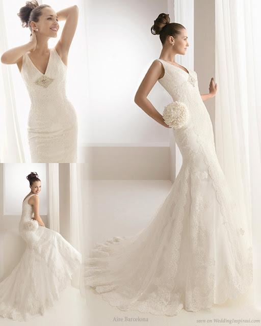These gorgeous gowns are from Aire Barcelona’s 2010 collection. Lovely use of light and airy fabric (like silk chiffon) and romantic laces.