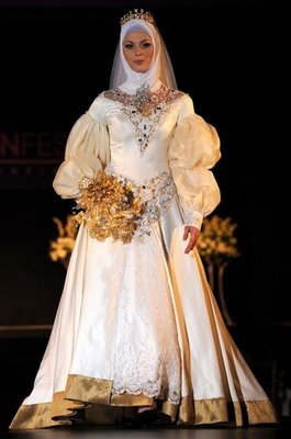 The Islamic Fashion Festival saw designers showcasing bridal collections. I love the Eastern twist to the white wedding gown, but not so keen on the skin-tight options! That is one of the qualms I have with events such as IFF, in that the original purpose was to promote creativity in clothing within Islamic guidelines, which is often challenging. I see it as a failure of this challenge when some of the outfits aren't quite up to scratch. Anyhow, I'm loving the general concepts, and here are some beautiful pictures from the show: